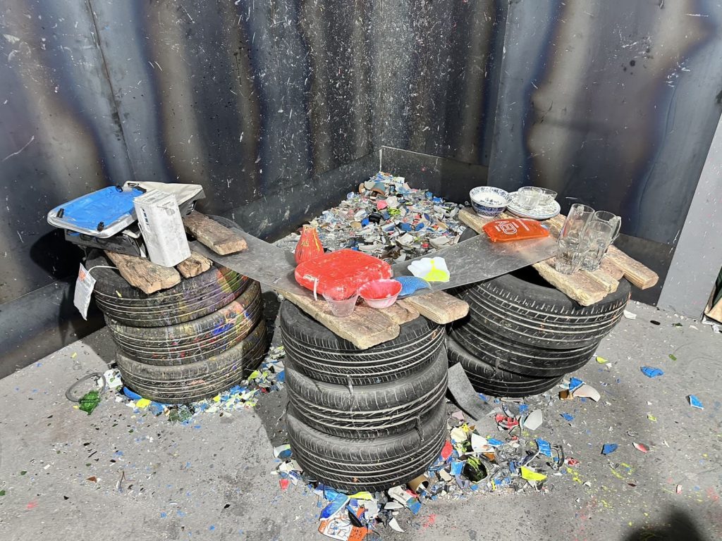 物壊し体験は、皿や家電などを思い切り壊してストレス発散ができるアクティビティです。